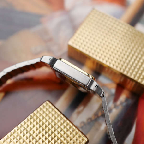 Le mariage de l’or jaune et de l’acier inoxydable donne une esthétique luxueuse et moderne.