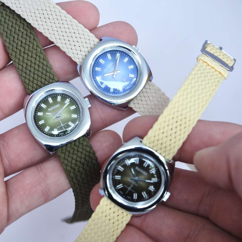 Les semaines passaient et à mesure de nos recherches, nous réalisions peu à peu que nous avions découvert une Maison aussi méconnue qu’audacieuse ! Cette manufacture originaire de Galice, a connu son âge d’or dans les années 1970, et proposait à cette époque plus d’une centaine de modèles et de formes ! Véritable génie créatif et homme d’affaires au sang chaud, José Cascón Molleda est le fondateur de Thermidor. Il imagina des années durant des montres gorgées de soleil, hautes en couleurs et aux formes singulières.