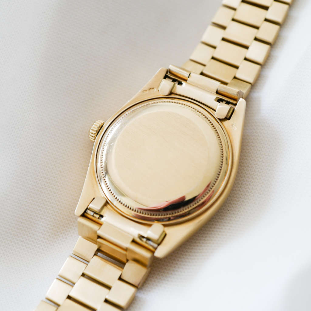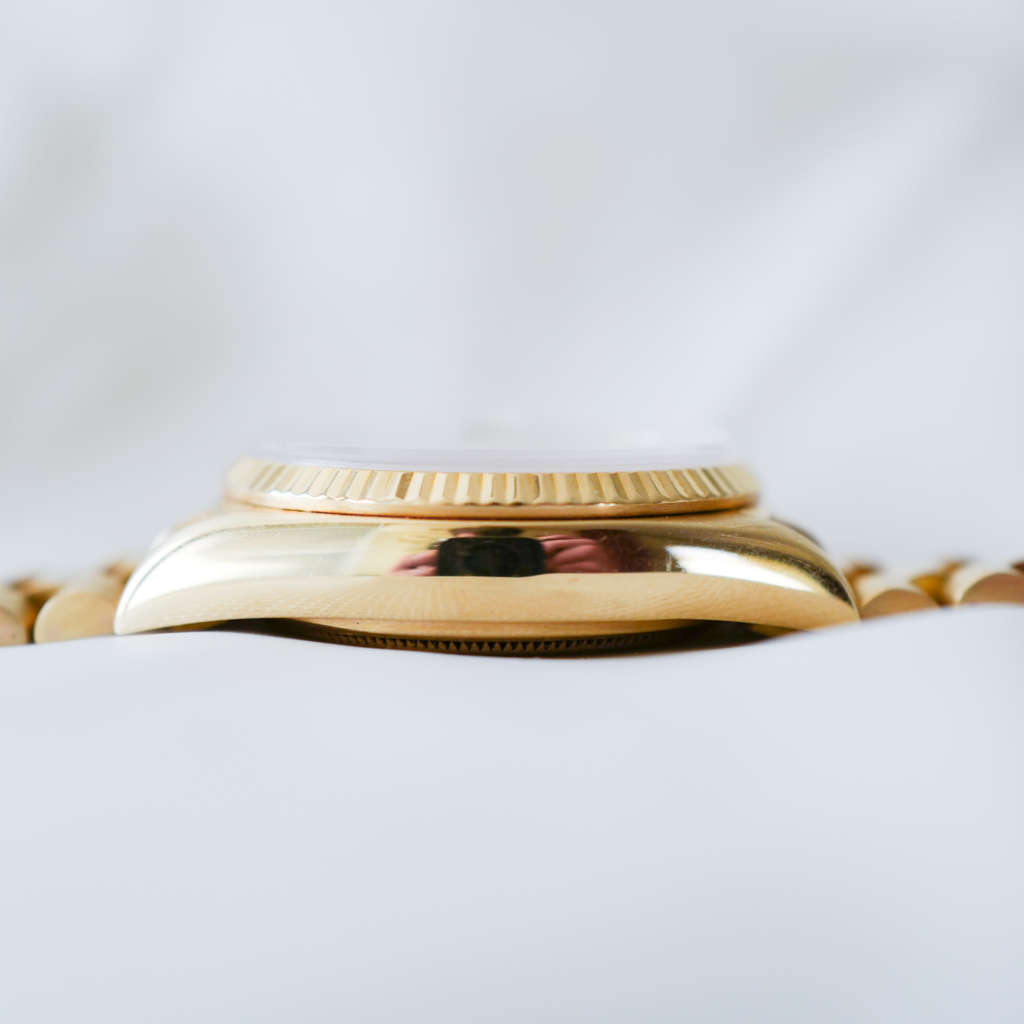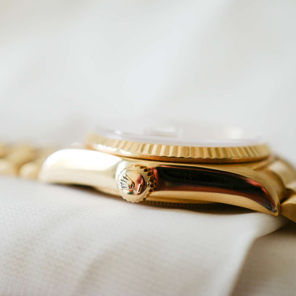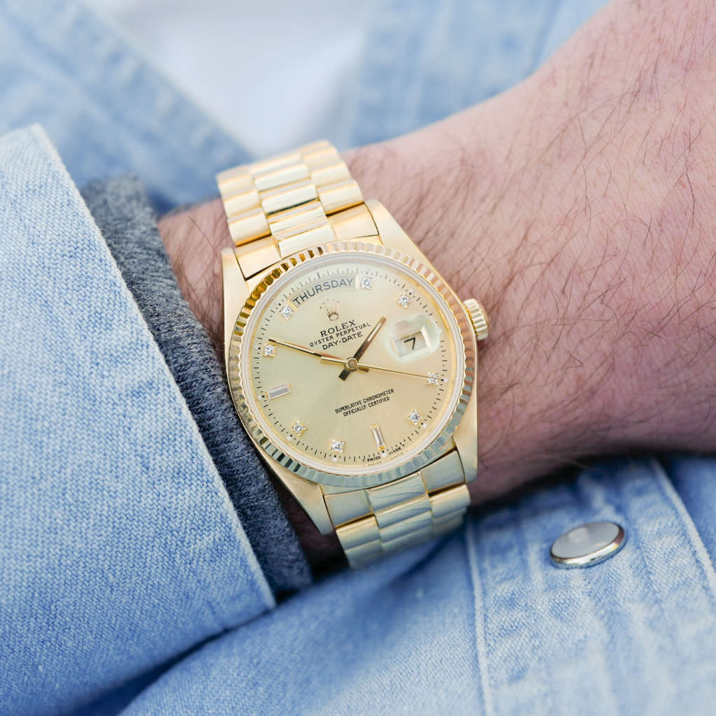 - Dans cette version en or jaune 18 carats et bracelet président en acier, il s’agit d’une véritable icône.