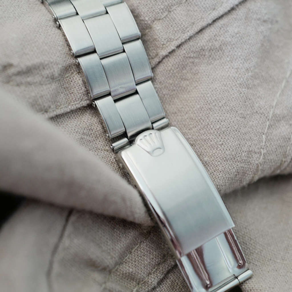 - Le bracelet est de type Oyster, plié et à rivets. Cela rend la montre particulièrement légère et confortable. Le bracelet ne présente quasiment aucun stretch.