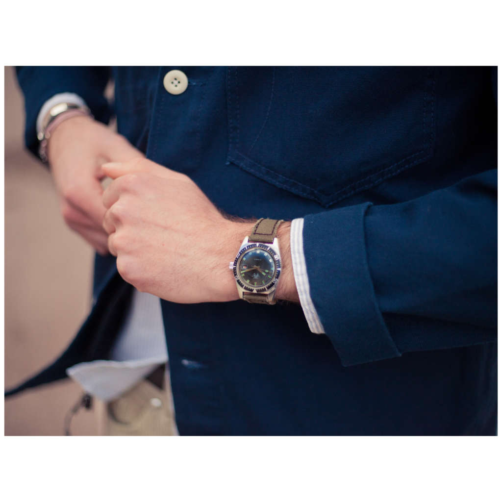 • Conformément à l’esprit de l’époque, nous l’avons habillé d’un bracelet en canva, ce qui en fait une montre très casual-chic.